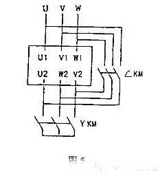 三相異步電動機的控制由定子電流的相序決定,從載流相到電流滯后相。如果你想改變控制,你只需要改變三相繞組中的電流相序。當使用Y連接時,三相繞組的電流相序設置為u、V和w,電源電壓相序為Uuv、Uvw、Uwu,如圖2所示。無論何種連接方式,只要三相電網電壓的相序保持不變,三相繞組的實際相序仍然是u、v和w,因此控制是相同的。因此,當Y-△ 啟動時,其轉向不變。
